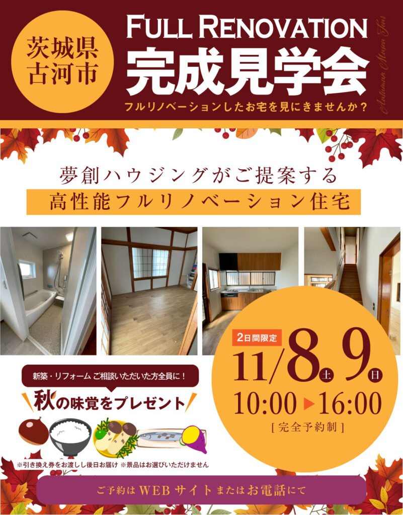 古河市にてフルリノベーション完成見学会開催決定! | 11月8日(土)・9日(日)